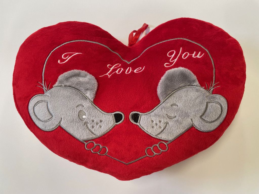 Szív párna mérete: 40 cm széles, 33 cm magas.