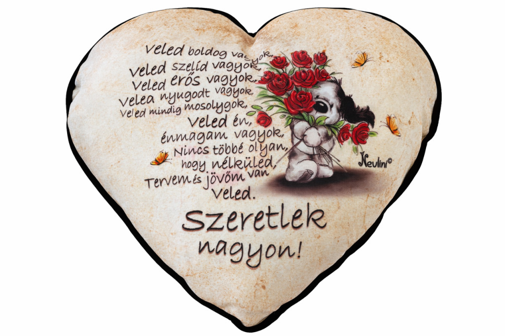 Szív párna mérete: 40 cm széles, 33 cm magas.